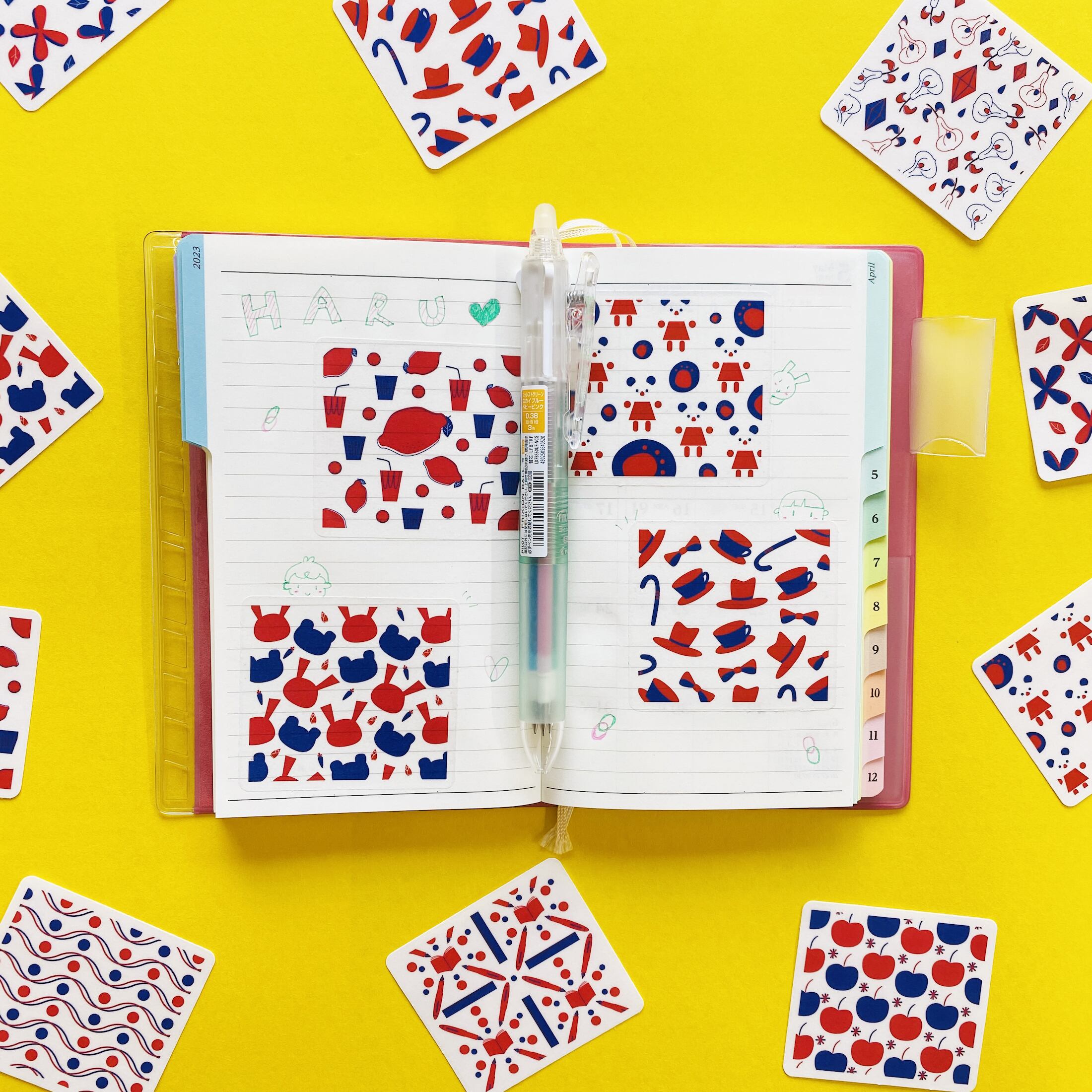 手帳、ノート、本はもちろん、スマホ、カメラやパソコンなどにも貼って飾れます。